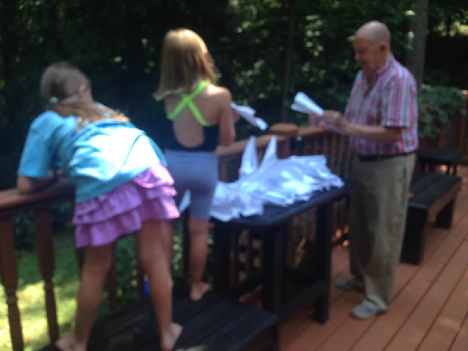 We did a lot of playing at Grammy's pool in too and it poured rain but didn't thunder so we just stayed! I left my camera at home by mistake so I don't have pictures of the pool playing down in the basement and cousin adventures of all 9 at Grammy's house.